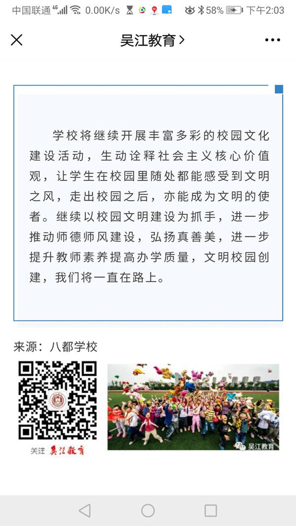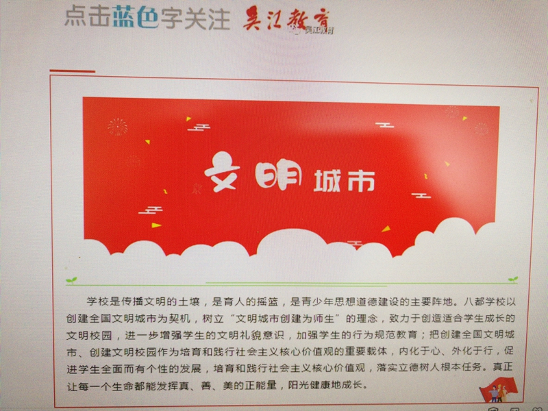 我校文明城市、文明校园创建工作被吴江教育微信公众号报道