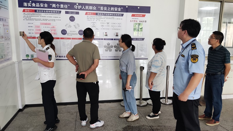 9月5日下午震泽镇镇长沈俊霞带领镇教育办、卫生办、市场监督局等工作人员来到八都学校,对初中部暑期中新改造后的食堂进行食品安全检查,并听取了丁红国校长对食堂改造前后面貌的介绍。