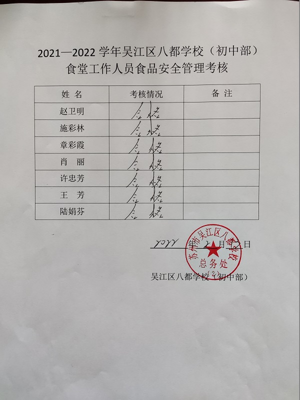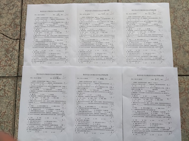 其次总务处杨国其主任再对食堂员工进行食品从业人员安全知识培训及考核