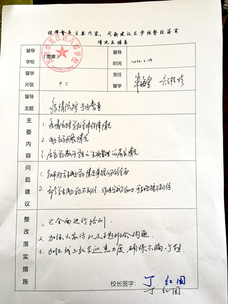 2月份:督学提出的问题有整改落实的措施,并积极整改