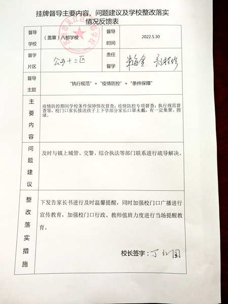 5月份:督学提出的问题有整改落实的措施,并积极整改