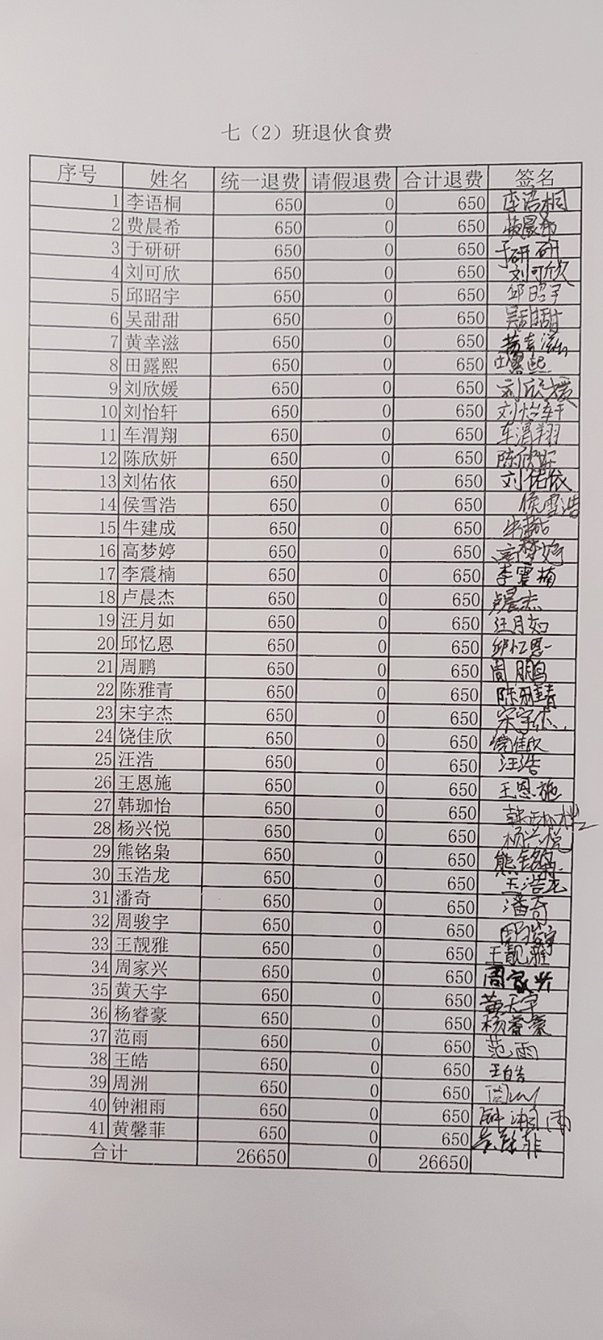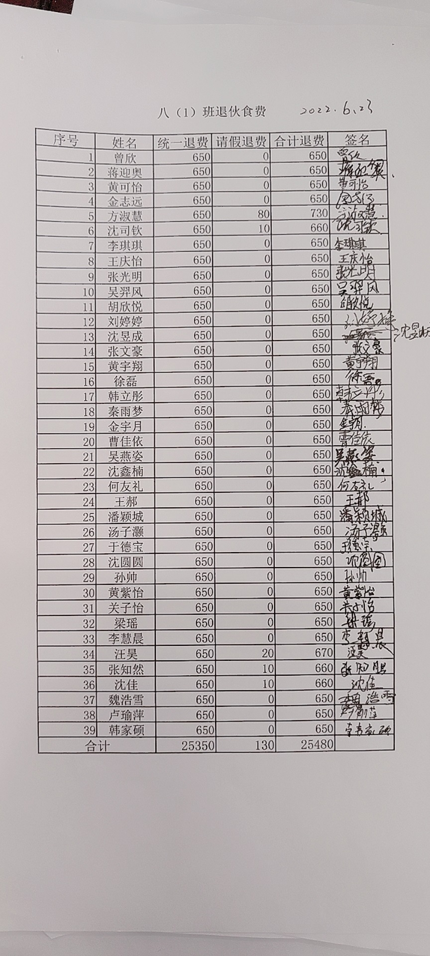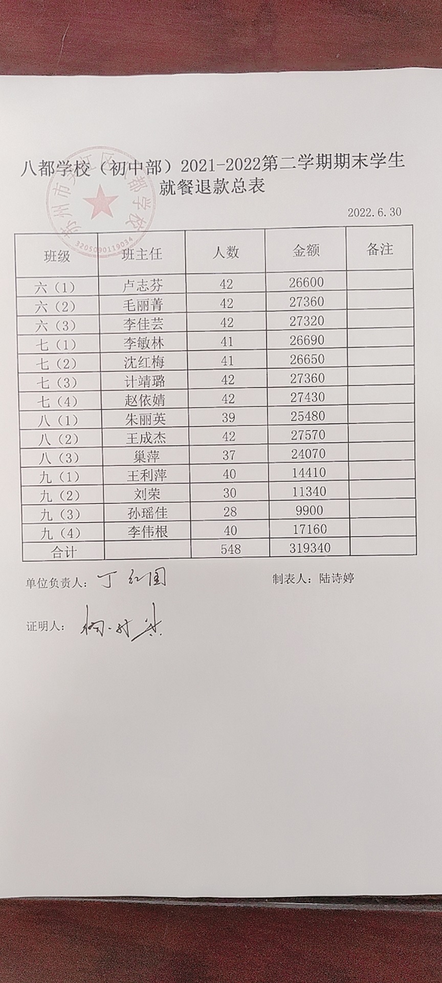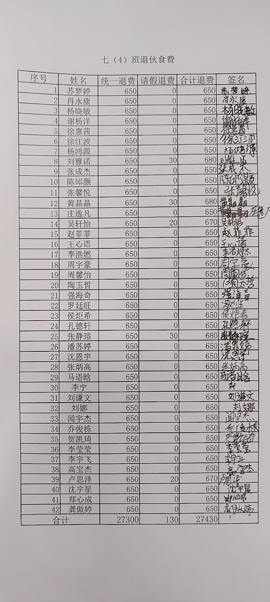2021~2022学年第二学期学生餐费退款
