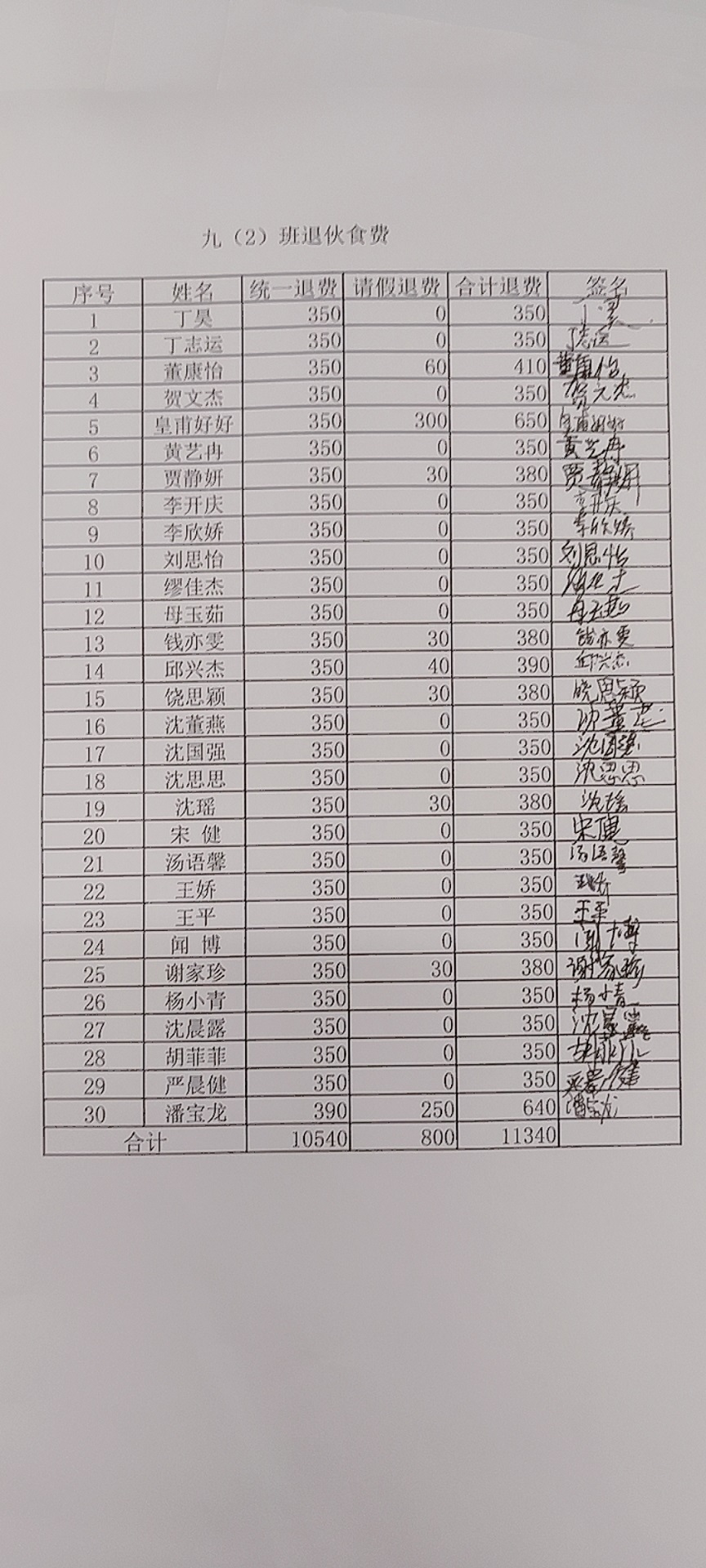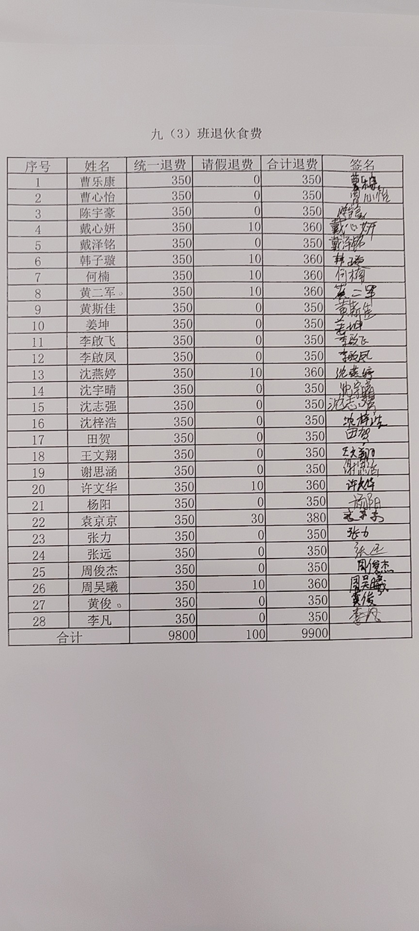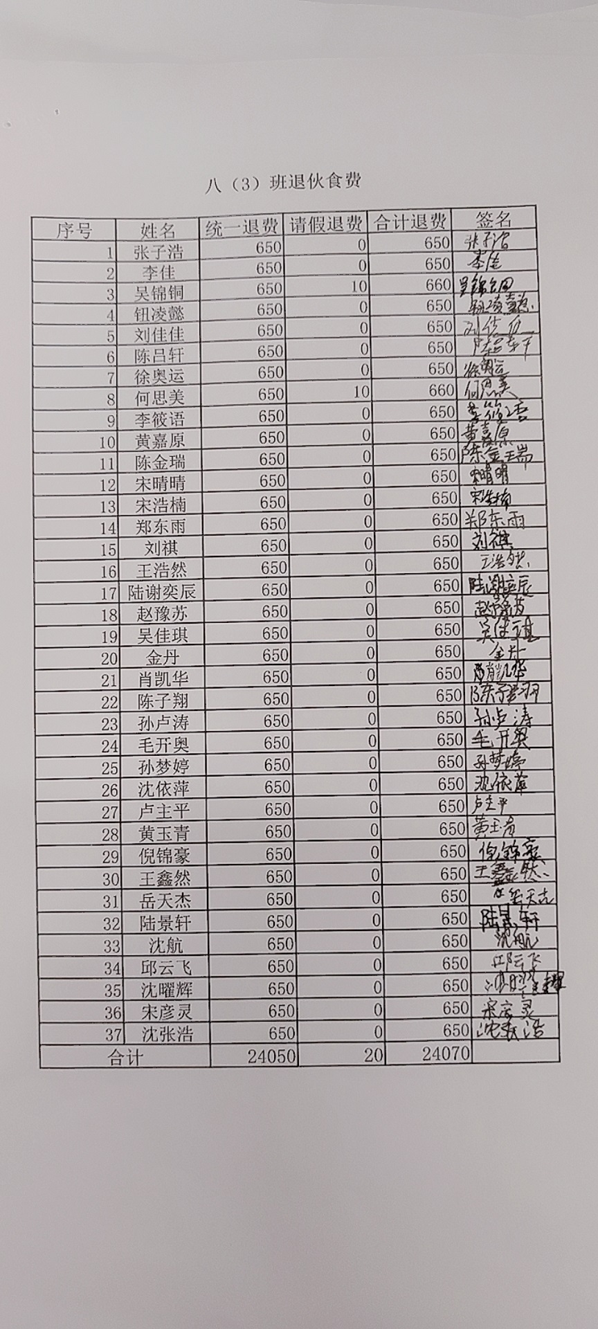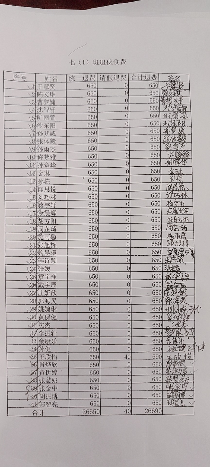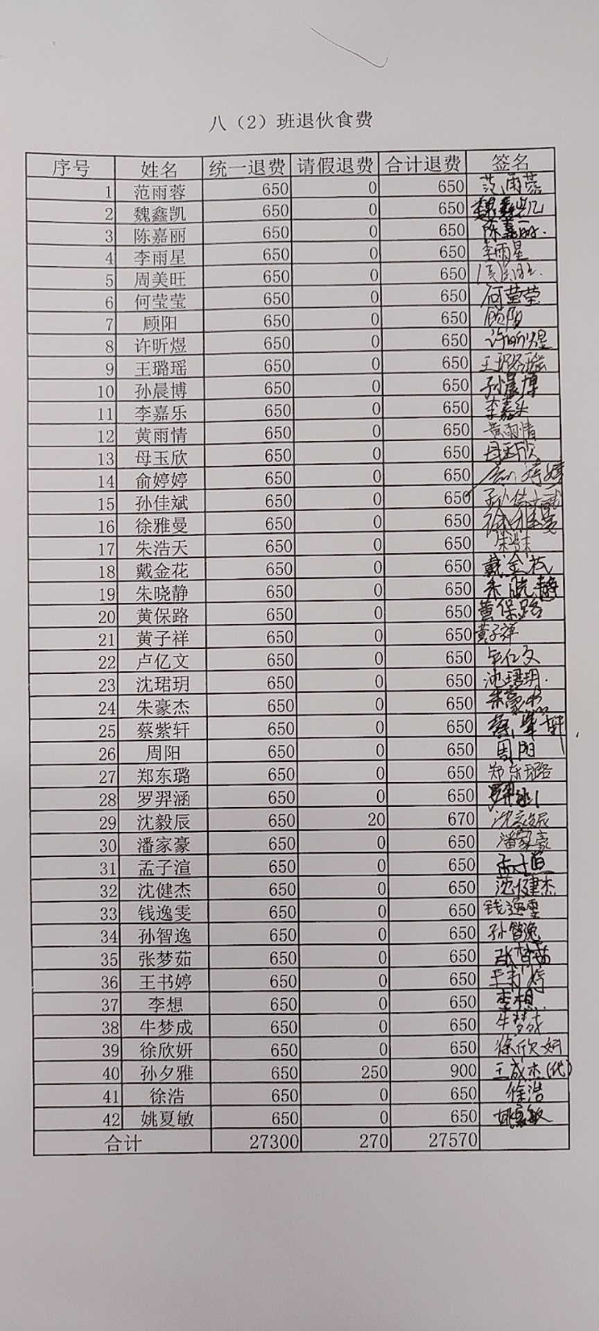 2021~2022学年第二学期学生餐费退款