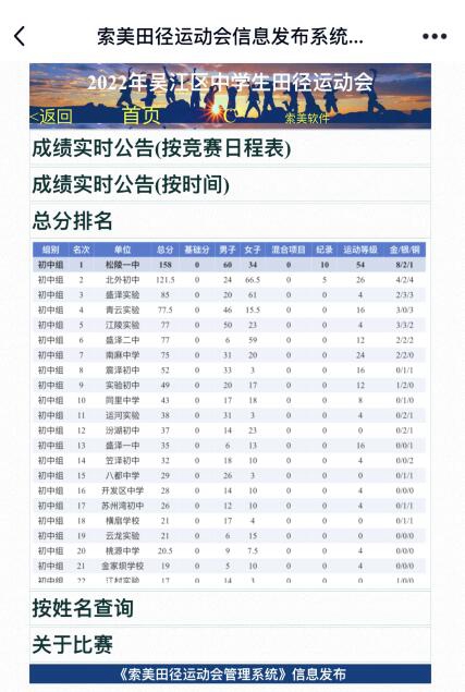 2022吴江区中学生田径比赛中,我校体育健儿在体育组孔明华、顾超老师的带领下,取得团体总分29分的佳绩,在近40所参赛学校中位列15名。