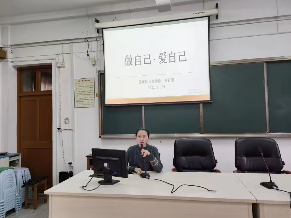 在疫情常态化的背景下,学生心理健康现状不容乐观。为进一步改善学生心理健康状况,应对秋冬季节转换时期可能发生的各类心理危机事件,确保我校学生的身心安全,维护我校校园平安稳定,2022年11月29日,我校兼职心理辅导老师朱舒雁针对初二学生开展了一次生命教育主题讲座《做自己·爱自己》。