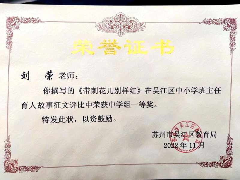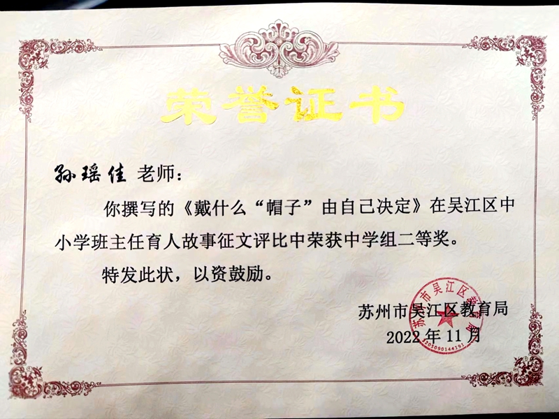 喜报:刘荣、孙瑶佳在吴江区中小学班主任育人故事征文评比中分获中学组一、二等奖