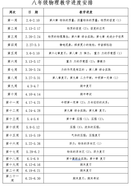 五.本学期教学进度安排