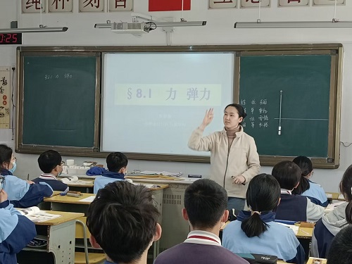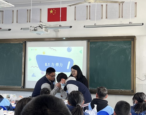 我校物理教研组积极响应。前期经历课题选择、教学设计、说课评课、修改设计等集体备课过程,2023年3月13日上午,沈吉利和朱舒雁两位青年教师以《力 弹力》为课题进行了同题异构课堂展示。 本次活动邀请了吴江区学科带头人、吴江区七都中学德育处主任孙方明老师做指导。