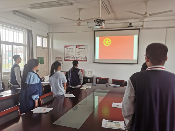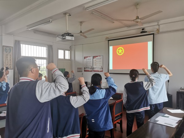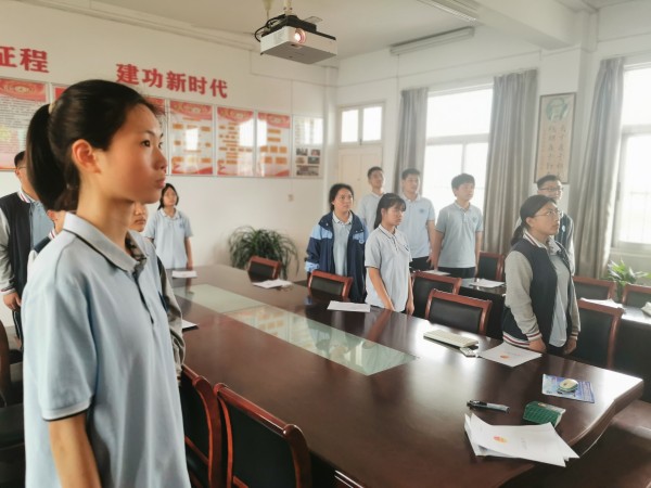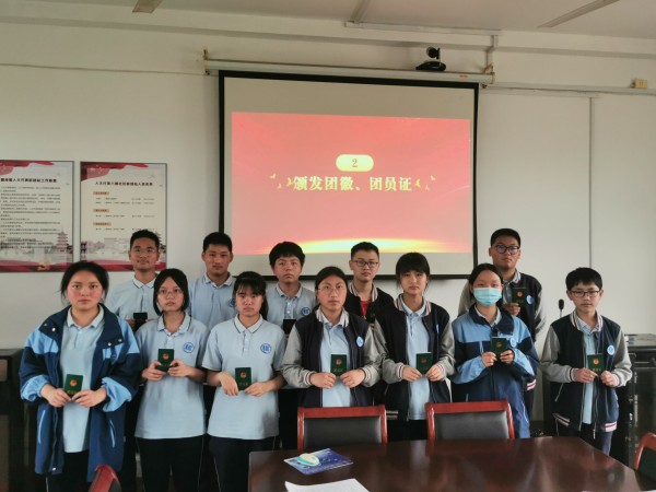 团歌嘹亮,王老师给新团员颁发了珍贵的团员证,佩戴上了闪亮的团徽,随后新团员们面对鲜艳的团旗右手握拳,手举过肩,在领誓人周美旺同学的带领下他们以最洪亮的声音庄严宣誓。“我志愿加入中国共产主义青年团,……”嘹亮的青春誓言表达了同学们对共青团组织的无限向往和豪迈激情,在高喊出自己名字的那一刻,新团员们肩负起作为一名共青团员光荣而艰巨的责任。雄壮的宣誓声,在会议室内久久回荡,一颗颗年轻的心,跳动着为共产主义奋斗终身的热情!