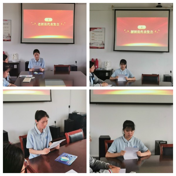 接下来,新团员代表曹黎婕同学发言。她精神饱满,用饱含深情与期待的声音诠释了共青团的精神。最后,学校团委王成杰老师希望新团员们牢记团的宗旨,无条件地履行团员义务,正确行使自己权利;铭记入团誓词,切实用一言一行来践行誓词,用自己优良的学习成绩来诠释誓词;保持团的先进性,树立好团员的形象,成为严守纪律、勤奋学习、热爱学校的楷模,做一名优秀的共青团员。