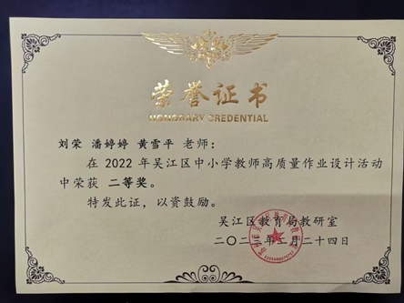 喜报 | 我校刘荣、潘婷婷、黄雪平老师在区高质量作业设计大赛中获团体二等奖
