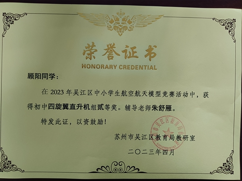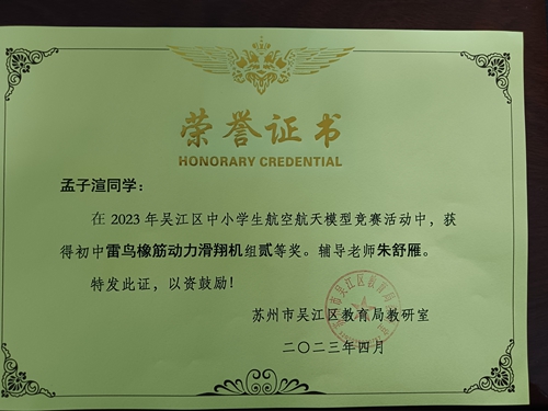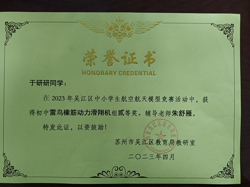 喜报︱我校顾阳、于研研、孟子渲同学在吴江区中小学航空航天模型竞赛中荣获二等奖