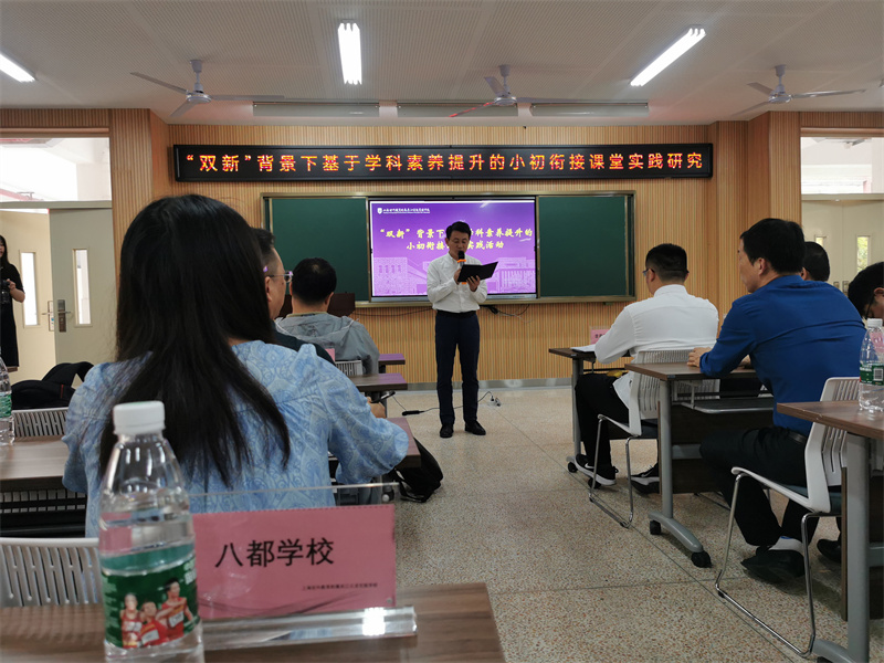 5月25日上海世外教育附属吴江云龙实验学校组织承办“双新”背景下基于学科素养提升的小初衔接课堂实践活动。八都学校六年级、七年级全体任课教师参与此次研讨活动。