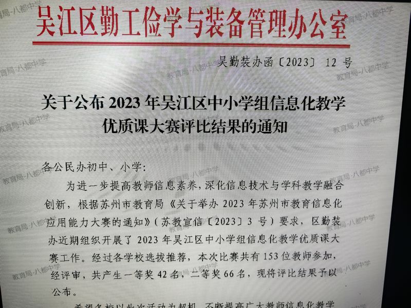 我校朱舒雁、潘婷婷老师分别获吴江区中小学组信息化教学优质课大赛一、二等奖