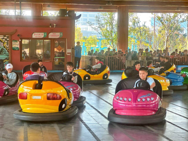 全体师生在导游、校领导、班主任和任课老师的带领下浩浩荡荡地进入园内参观游玩,园中各种各样的游乐设施让学生们跃跃欲试,流连忘返。