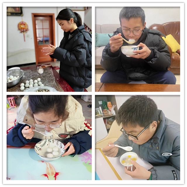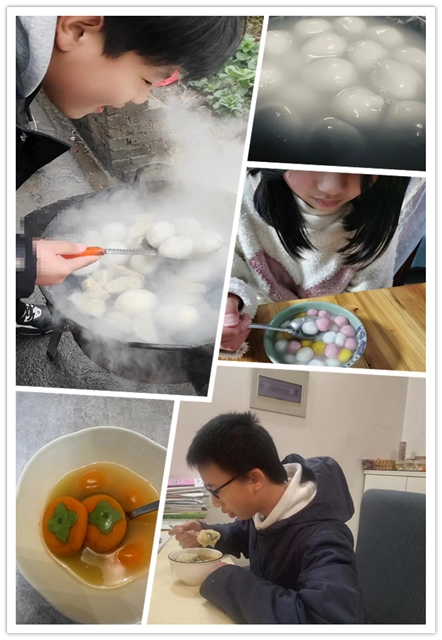 元宵佳节怎能少了吃汤圆呢?同学们在家里都充分发挥劳动技能,为家人煮了可口的汤圆,有些同学还亲自为长辈端了一碗汤圆,感恩之情溢于言表,孩子们都感受到了家庭的温馨和美满。