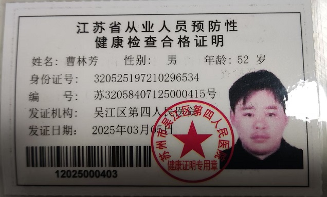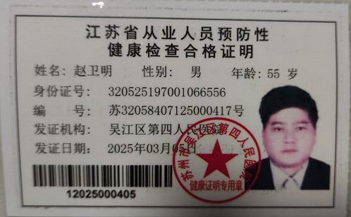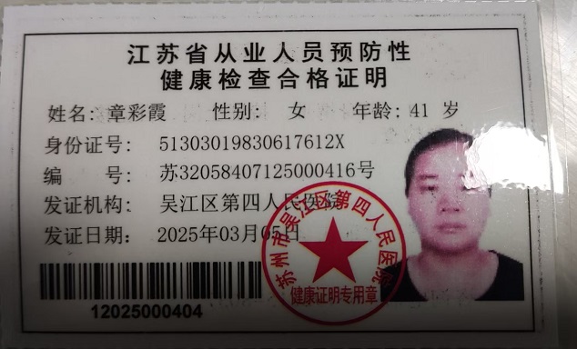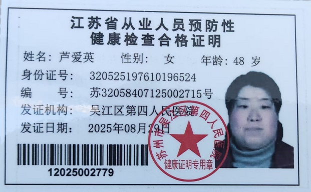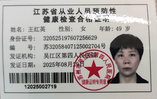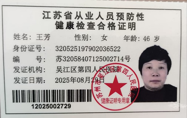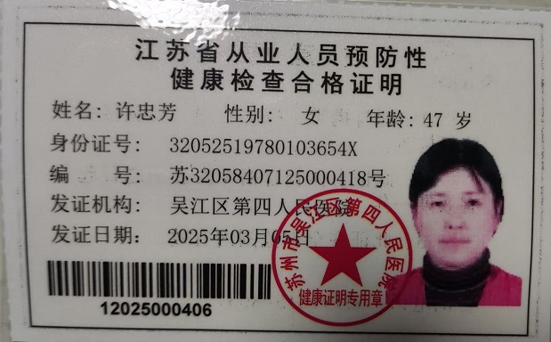 八都学校初中部食堂从业人员健康证