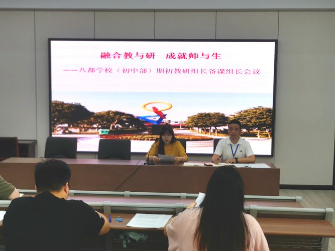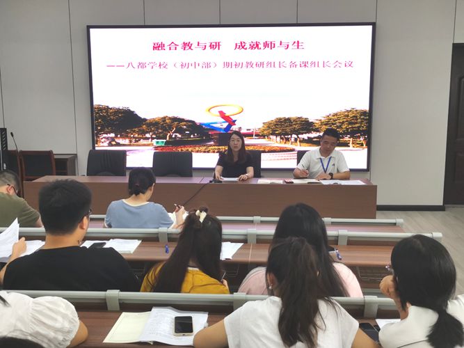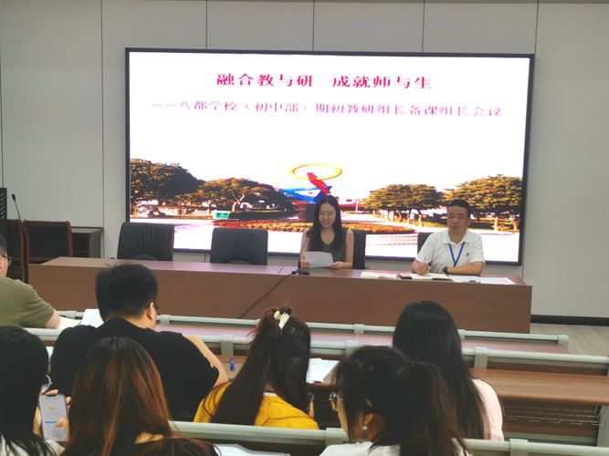 开学伊始,八都学校初中部教务处在阶梯教室召开了以“融合教与研,成就师与生”为主题的期初教研组长、备课组长会议。此次会议由王主任主持,分管教学孙校长、各学科教研组长、备课组长参加了此次会议。