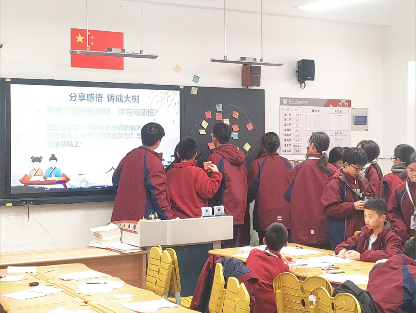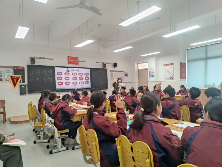 2024年11月21日,我校青年班主任汪佳慧老师,参加吴江区中小学德育研究中心组九年一贯组专题研讨活动,开设《少年有梦 从新开始》一课,汪老师借真心话大冒险击鼓传花游戏引入课堂,巧妙拉近师生距离,引出“少年有梦,从心开始”班会主题。接着让学生写梦想、看卓君视频,感悟梦想契机与缘由,冥想欠缺。携手学生参与“梦想拍卖会”,明不足和方向。最后复播视频悟追梦之道,学生贴便利贴、放飞纸飞机,寄寓追梦决心。受到大家一致好评。