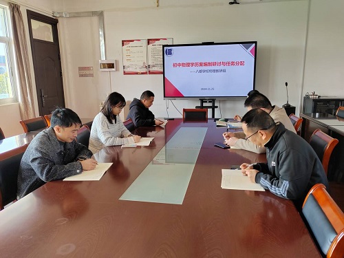 为提升我校青年物理教师教学实施与单元学历案编制水平,2024年11月25日,孙方明副校长的牵头下,八都学校物理教研组开展了初中物理学历案编制研讨与任务分配活动。