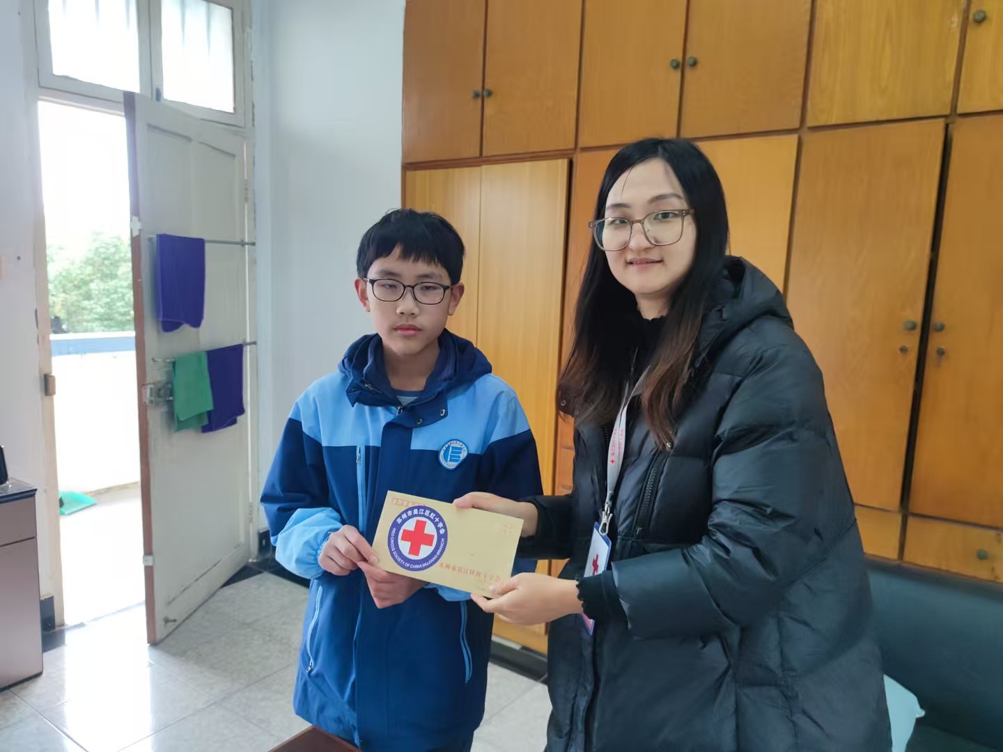 2月26日下午,八都本土爱心企业奥林特纺织有限公司吴彩凤女士来到八都学校初中部会议室参加“爱心捐助”活动,为我校初三贫困学生小黄进行捐助。