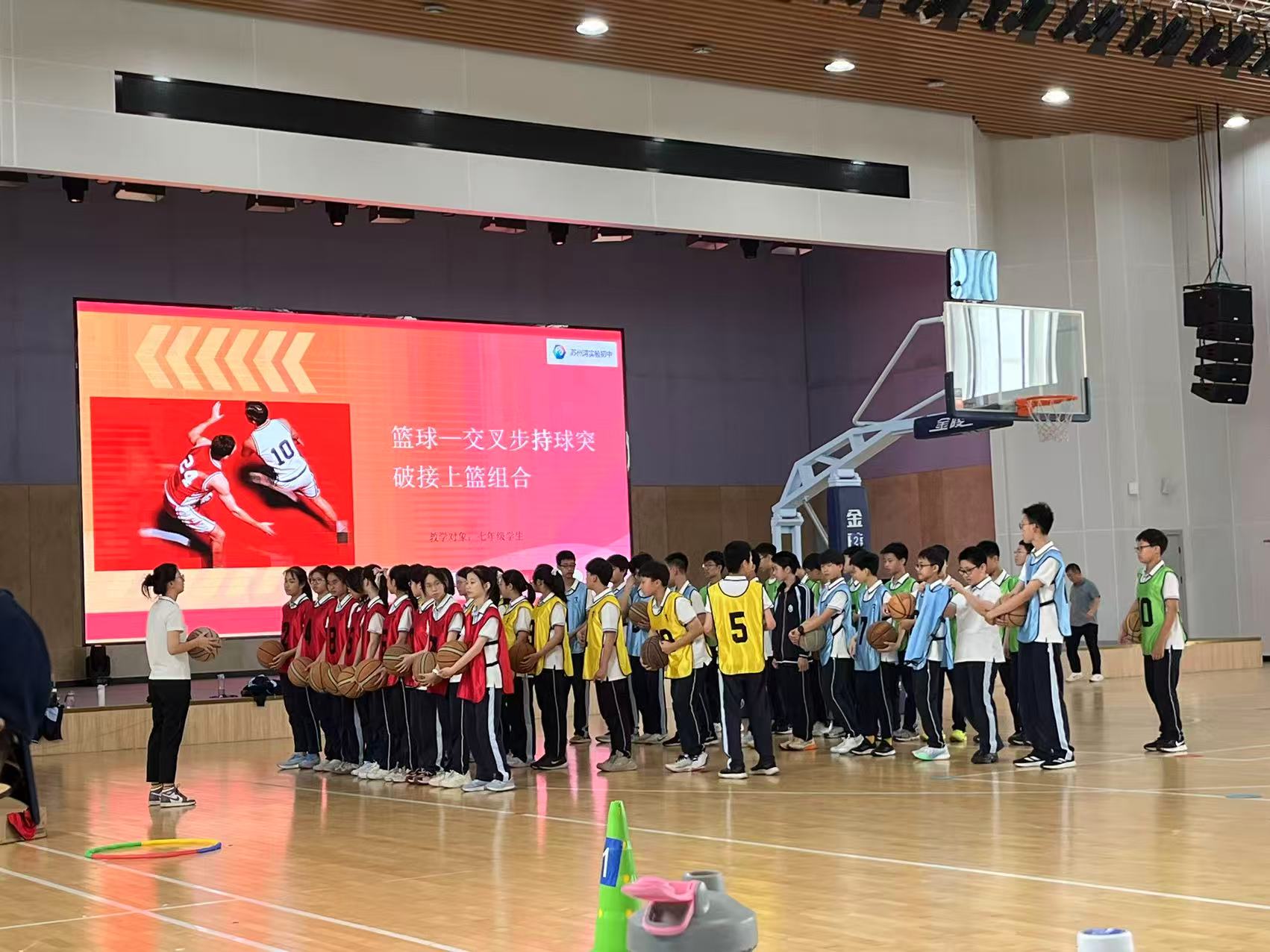 本次活动以同题异构的形式精彩呈现,教学内容为《篮球—交叉步持球突破上篮及其组合动作》。吴江区体育学科带头人张鹏老师为大家带来了示范课,而苏州湾实验初级中学顾盼老师则展示了精彩的同题交流课。
