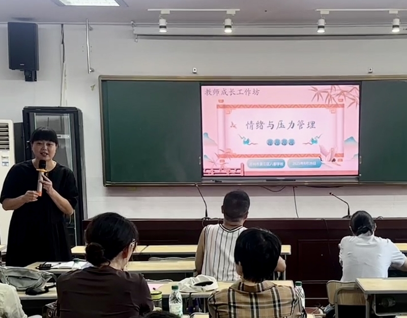 培训伊始,张兆琴校长以“情绪与压力管理”为核心主题,巧妙以“交流开学心情”为互动切入点,迅速拉近与在场教师的距离。“新学期既期待与学生重逢,又难免因备课、班级管理感到压力”“面对新教学任务,偶尔会有焦虑情绪”……老师们坦诚分享心声,现场氛围瞬间变得轻松融洽,也为后续培训内容筑牢共鸣基础。