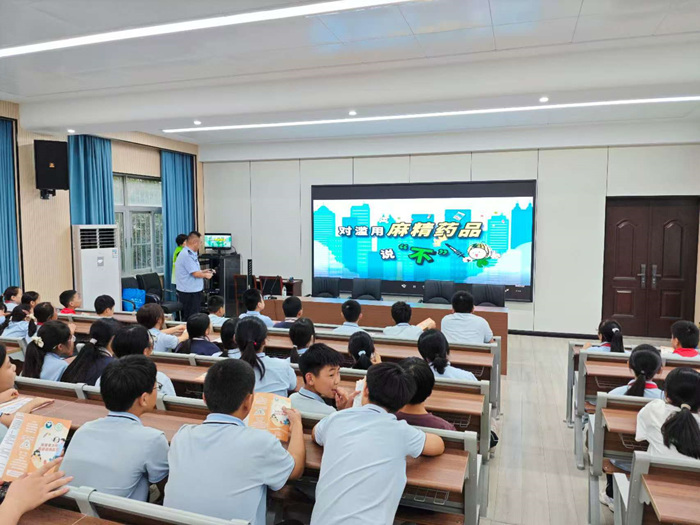 张警官特别针对初中学生的年龄和心理特点,重点讲解了如何识别和防范毒品陷阱。他告诫同学们:“一定要警惕那些伪装成‘跳跳糖’、‘邮票’、‘卡通贴纸’、‘网红饮料’等形态的新型毒品,绝不接受陌生人给的任何食物和饮料,不出入不健康的娱乐场所,谨慎交友,培养健康向上的兴趣爱好。” 同时,他还介绍了我国关于毒品违法犯罪的法律法规,让同学们明白吸毒、贩毒是绝不能触碰的法律红线。