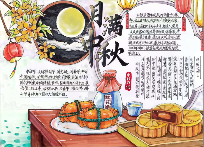 除了以上活动之外,为弘扬中华民族优秀传统文化,营造浓厚节日氛围,近日,我校成功举办了“月满中秋”主题手抄报及书法比赛。