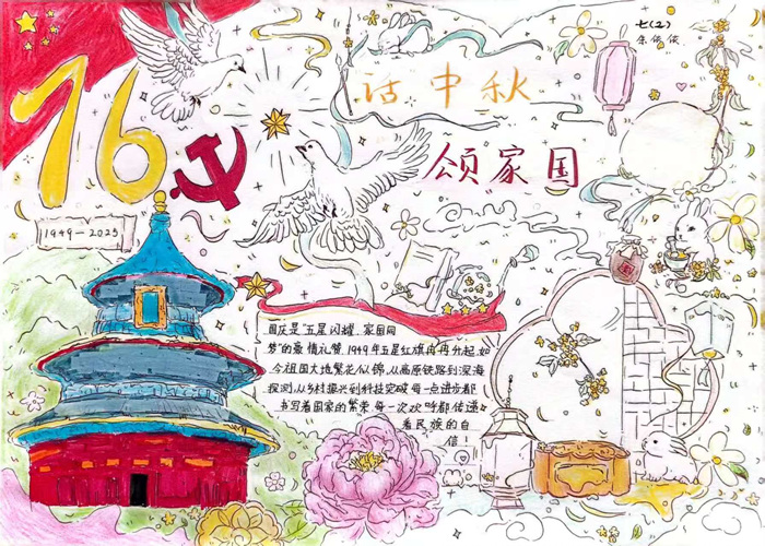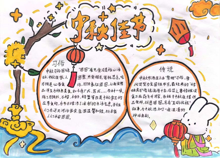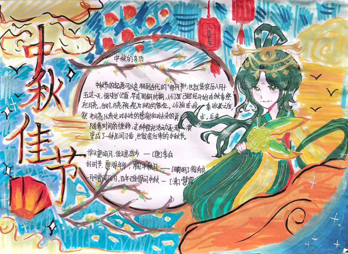 本次活动得到了同学们的积极响应和热情参与。在手抄报比赛中,同学们精心设计版面,用五彩的画笔和生动的文字,描绘出嫦娥奔月、玉兔捣药等经典传说,表达了对团圆、丰收的美好祝愿。一幅幅或端庄秀丽、或苍劲有力的书法作品跃然纸上,内容多为咏月经典诗词,翰墨书香中尽显传统文化的独特魅力。