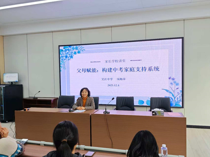 为进一步加强家校协作,助力初三学子高效备战中考,12月4日下午,我校特组织召开初三年级家长会。活动特邀全国模范教师须海萍老师,为全体家长带来了一场以“和谐亲子关系与科学学习方法”为主题的专题讲座。