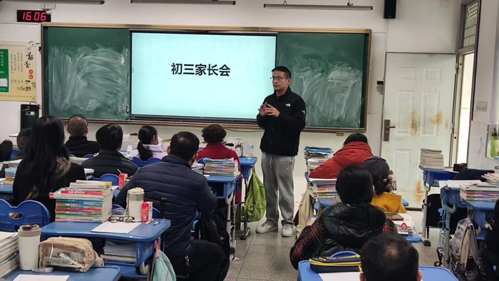 随后,家长们移步至各班级教室,参加由班主任与任课教师主持的班级分会。各班教师结合本班学情,细致分析了现阶段学生的学习状态与学科表现,并就中考复习安排、个性化辅导方案等与家长进行了深入交流。老师们针对家长关心的问题一一解答,共同探讨了后续家校配合的具体方向,现场氛围热烈而务实。