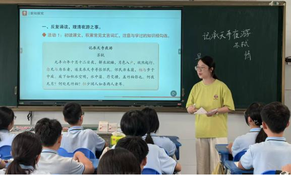贺玉洁老师以“游记”为议题,精选《记承天寺夜游》等多篇文本进行课堂展示。贺老师通过“文本比对—问题探究—情感共鸣”的教学环节,引导学生在群文互证中深植乐观豁达的心态,同时培养学生的分析与归纳能力。