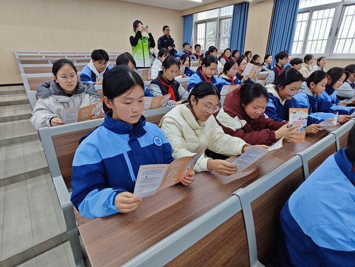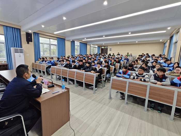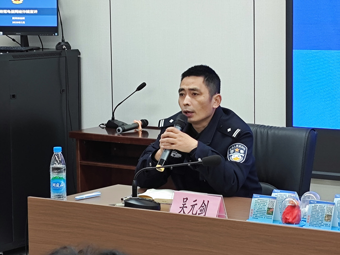 活动伊始,吴元剑警官针对当前电信网络诈骗手段层出不穷、学生群体易受侵害的特点,结合真实案例,用通俗易懂的语言向同学们剖析了“刷单返利”“冒充熟人”“虚假游戏交易”等常见诈骗套路。他重点强调了“不轻信、不透露、不转账”的防范原则,并提醒同学们在遇到可疑情况时要及时与老师、家长沟通,或拨打报警电话,牢牢守护好自己的“钱袋子”。