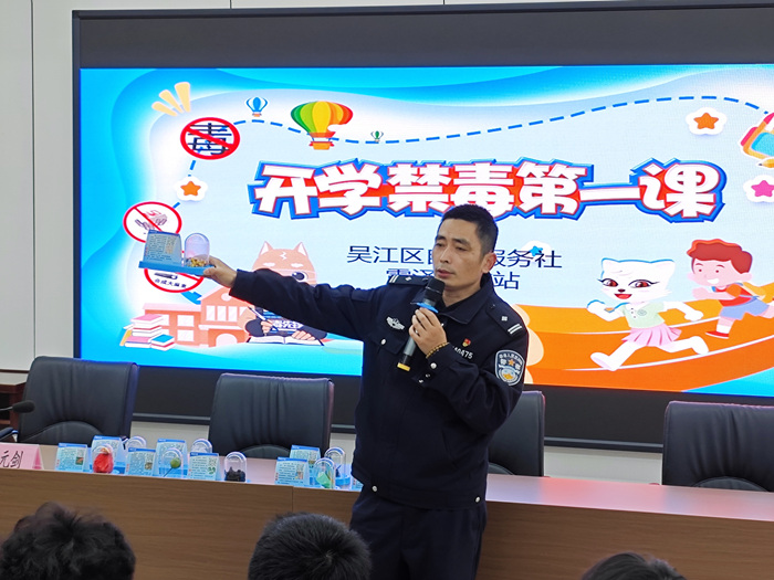 为增强学生的安全防范意识,提升自我保护能力,共建平安和谐校园,3月18日,我校特邀法制副校长吴元剑警官进校,为全体七年级学生带来了一场干货满满的防范电信网络诈骗宣讲会及禁毒教育开学第一课。