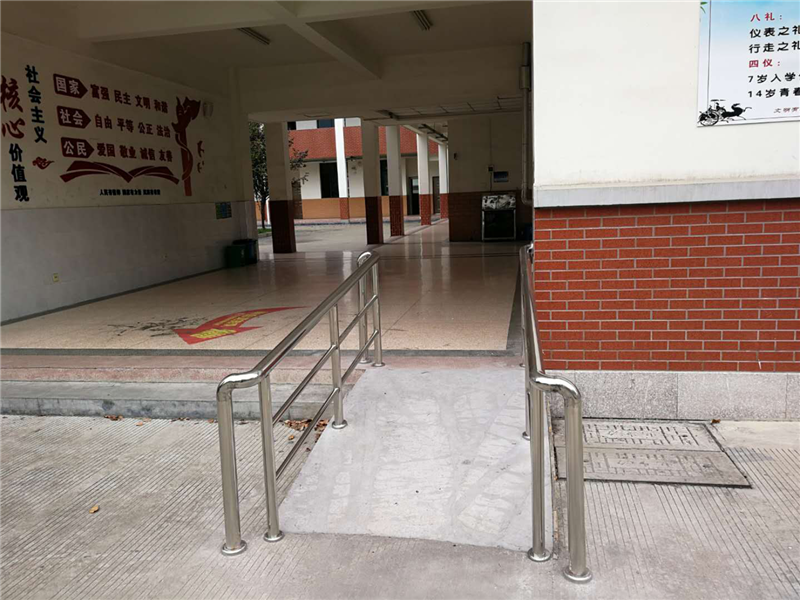 同时,学校教学楼主要楼梯口,都设置无障碍通道,如是轮椅进入,也能顺利进入教室。
