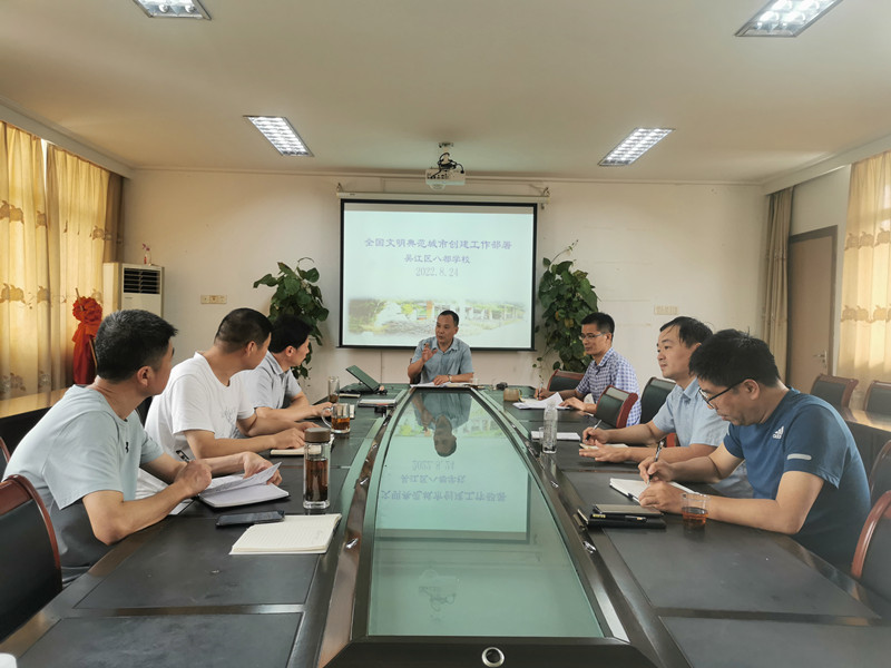 为了确保按时按质完成苏州市政府提出的创建全国文明典范城市的工作任务,加强我校师生思想道德建设,全面提高我校师生的道德素养,创建文明、和谐的校园环境。8月24日,八都学校召开了全国文明典范城市工作部署会议。会议由丁红国校长主持,全体校级领导参加会议。