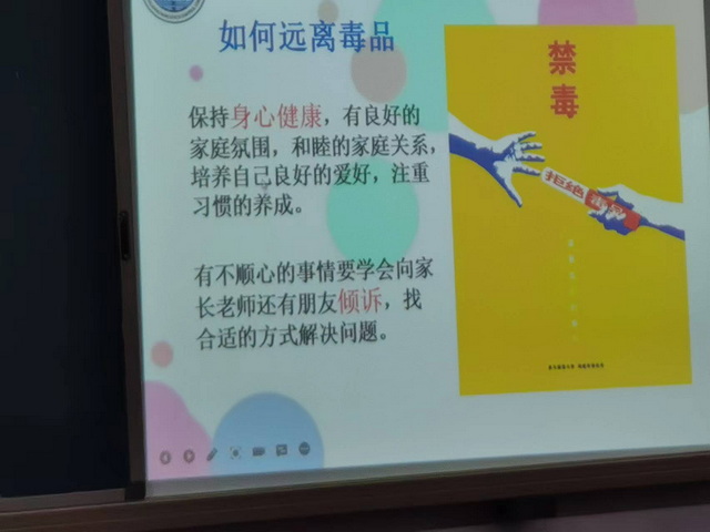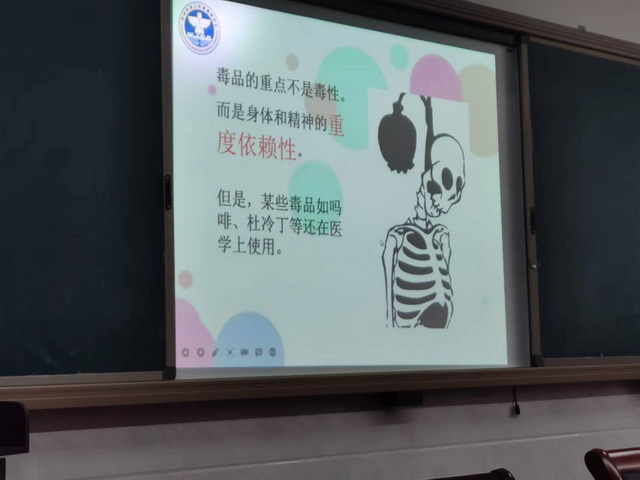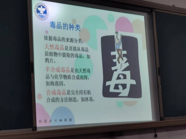 禁毒社工带来了宣传资料,给同学们每人发了一份。接着利用PPT和视频从毒品的种类、毒品的危害、如何远离毒品、新型电子烟的危害等多方面进行了讲解。讲解过程还穿插了知识抢答环节,同学们参与到热情非常高。效果非常好。