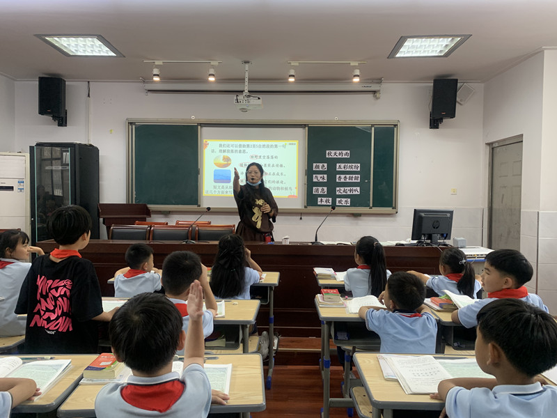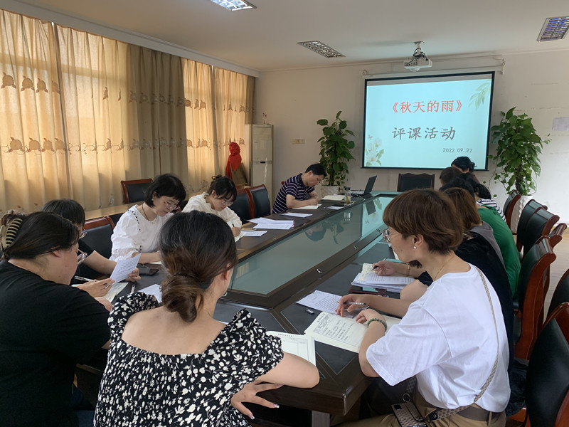 9月27日沈青老师执教《秋天的雨》,全体一——三年级语文老师参加了听课活动。