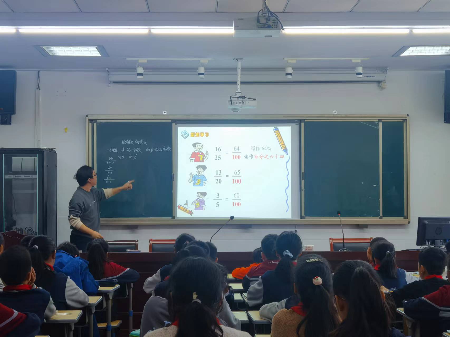 10月12日下午第一节课,我校青年教师李佳斌执教教研课——《百分数的意义》,数学组全体老师参加了听课活动。