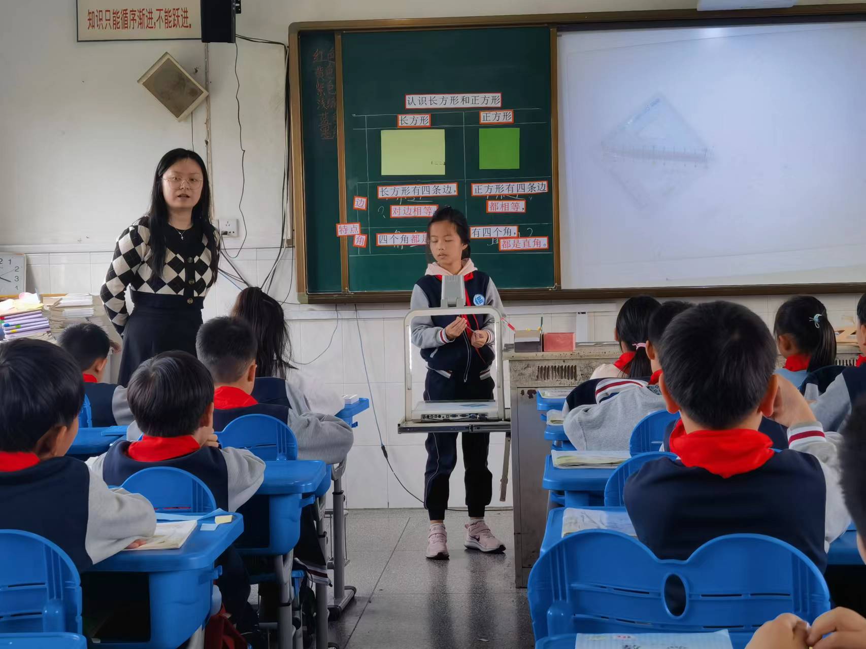 10月17日下午第一节课,我校青年教师吴晓青执教教研课——《认识长方形和正方形》,数学组全体老师参加了听课活动。