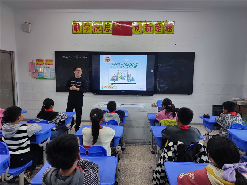 11月23日下午,我校心理健康老师李佳斌老师为五年级学生开展《呵护心灵 健康成长》的心理健康团辅导。在课上,李老师通过 “什么是健康”展开讨论,让学生们说说自己的困惑,李老师针对学生的困惑进行分析讨论,同时也罗列了学生可能出现的心理状况,李老师告诉大家:面对自己的心理困惑,要多与父母沟通,需要了解自己、接纳自己、肯定自己。。。。。