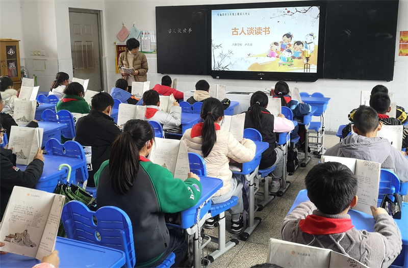 12月9日上午第一节课,吴江区语文学科带头人卢志芬老师执教《古人谈读书》第一课时,同年级其他老师参加了听课活动。