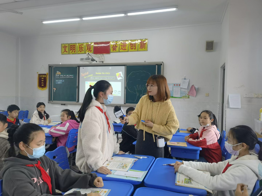 曹旭芳老师以小组合作的方式、任务展开教学,调动学生学习的积极性。曹老师的课以Bobby、city 等关键词串联起Cartoon、Fun time和Sound time,整堂课流畅连贯。曹老师在教Cartoon time时,设置悬念,充分吸引学生,自然地让学生走入语境,再通过有感情的朗读来感受“Cartoon time”的趣味性。CCTV记者小道具的使用掘开了学生的课堂参与度;小组合作和制作poster等形式培养了学生合作意识、巩固操练了所学内容,让学生走向语用。