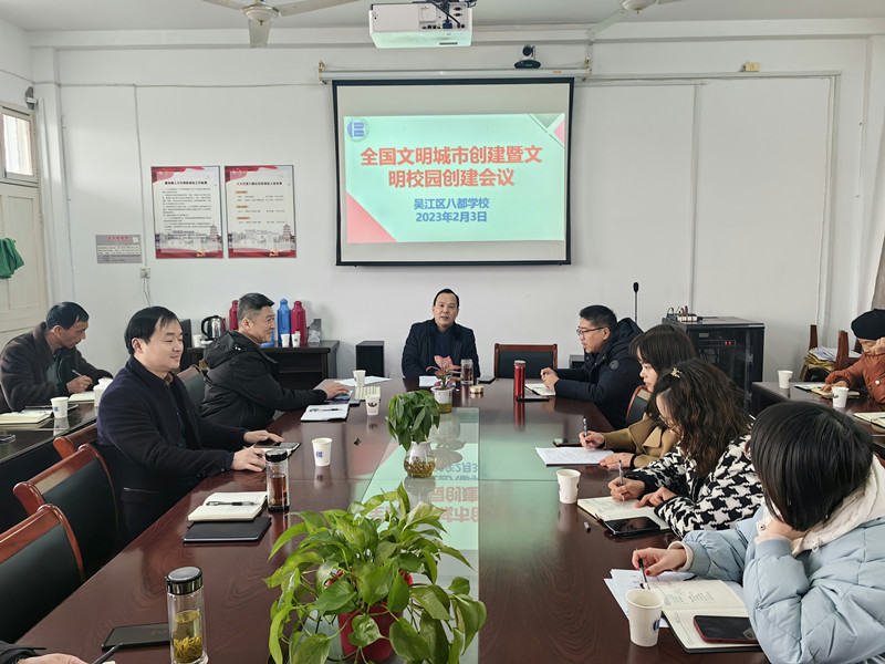 2月3日下午,八都学校全体行政人员在行政楼三楼会议室召开新学期全国文明城市创建暨文明校园创建工作会议。