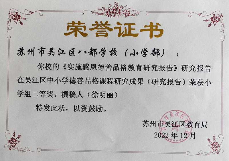 喜报:李佳斌、徐明丽在吴江区德善品格成果评比中分获一、二等奖