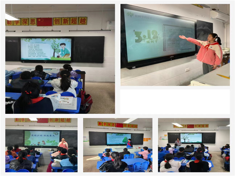 各班开展了以“爱绿护绿 拥抱春天”为主题的班会活动。各班班主任们向孩子们介绍了植树节的由来,倡导孩子们将保护环境内化于心、外化于行,用心爱护大自然中的一草一木。