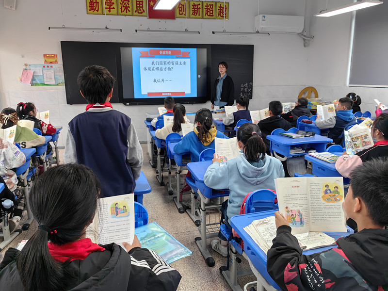 2月16日的晨会课上,教师与学生一起共同学习了富强篇《身边的变化》。通过老师的讲述,学生联系生活实际,从吃、穿、住、行、用等各方面发生的巨大变化谈感受,畅想未来。从而让学生对祖国的富强充满了自豪与骄傲,对祖国的美好未来充满了向往与自信,也让社会主义核心价值观在润物细无声中深入学生的心中,随时间不断滋长。