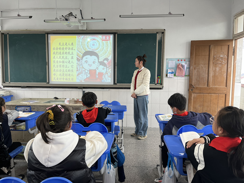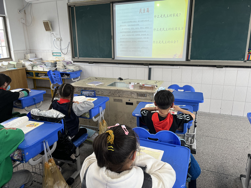 2月23日的晨会课上,四(5)吴世婷老师与学生一起共同学习了民主篇《校园午餐变身记》。老师引导学生从课本中的故事出发,从故事中学生的行为中体会什么叫民主?怎样的做法叫民主?遇到不同见解的时候,该怎样采用民主的方法统一思想和认识?……特别是脑洞大开一环节,学生对图中的行为展开了激烈的辩论,在思想的碰撞中学生对民主有了更深刻的理解:民主不代表是随性而为、随意而为。随后老师指出民主,是听取每个人意见,按大多数人的意见即公共利益办,民主是以多数决定、同时尊重个人与少数人的权利为原则。民主篇的教学帮助学生树立了正确的民主观,对学生今后在参与班级管理、家庭生活、社会活动中如何行使民主权利具有积极的意义。