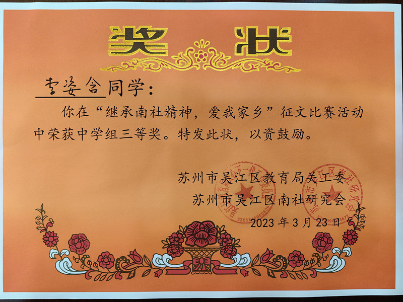 喜讯:“继承南社精神、爱我家乡”征文比赛获佳绩